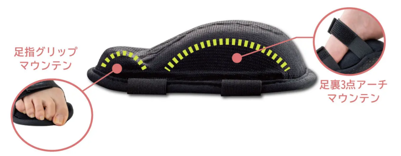 特長2.ダブルマウンテン構造が足指のグリップ力と足裏のアーチ形成をサポート