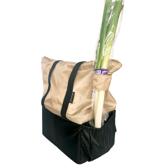・従来の買い物バッグでは収まりにくかった、ネギやゴボウなど細長いものを固定するための、専用の「ネギポケット」を側面に設置しています。