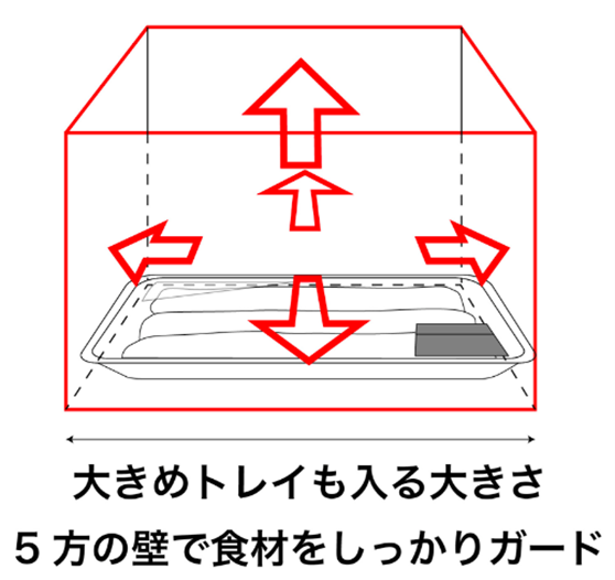 ・大きめのトレイが収まるサイズで、お弁当や肉・魚のトレイも倒れにくいです。