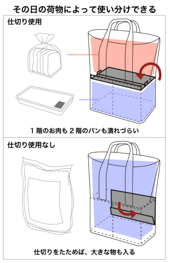・仕切りは折り畳むことができ、大きな物を入れることもできます。